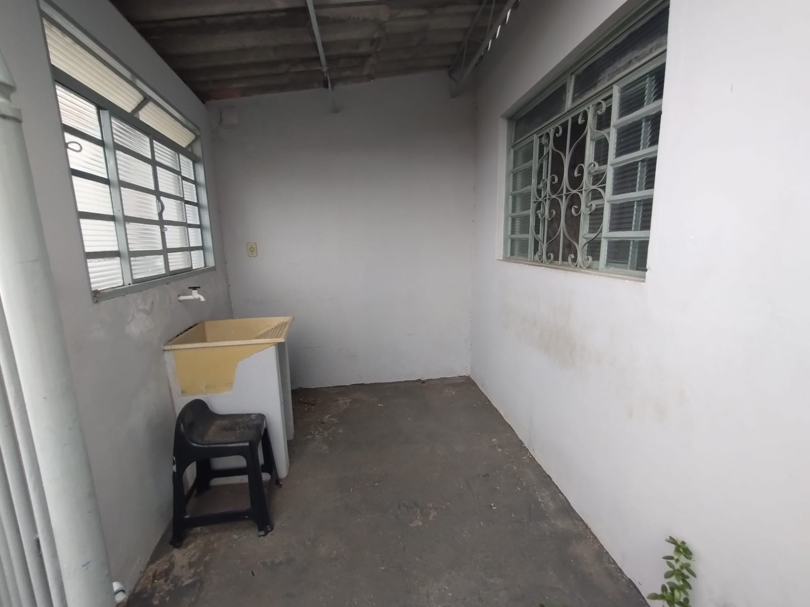 Casa contendo 3 cômodos, um quintal pequeno com lavanderia e um espaço bem amplo para vaga de garagem.
